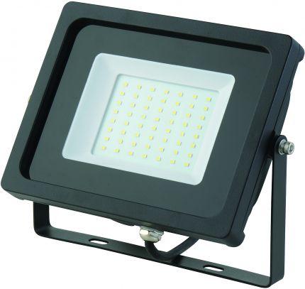 Outdoor LED spotlight with handle for mounting to the wall lightings, LED spotlight power is 50 W, and thanks to IP65 protection cover can be installed both indoors and outdoors. LED spotlight with IP65 protection cover, is fitted with high-quality LED chip SMD 3528, which provides enough power to illuminate a desired area. Emits light with a color of 6500K. LED lights can save a significant amount of electrical energy. They are constructed to be used for frequent switching on and off. They can be used primarily for lighting of construction sites, commercial areas, parking lots, or open spaces.